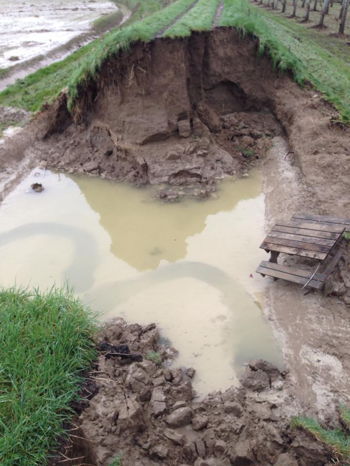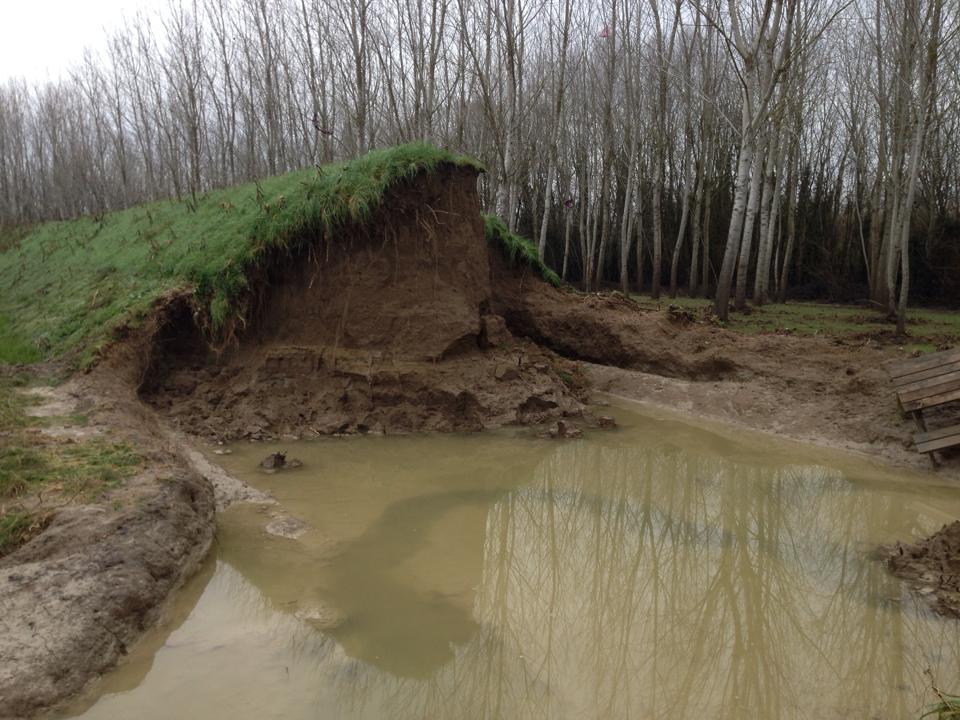 "Quelle che si vedono potrebbero essere (uso il condizionale per prudenza) delle tane di animali all’interno delle quali l’acqua del fiume, data la sua forza, potrebbe essersi aperta un varco. Ricordo infatti che quando ho iniziato a vedere l’acqua entrare nei campi, questa aveva una traiettoria obliqua rispetto all’argine, e la linea ricurva delle tane confermerebbe quanto io ho visto."